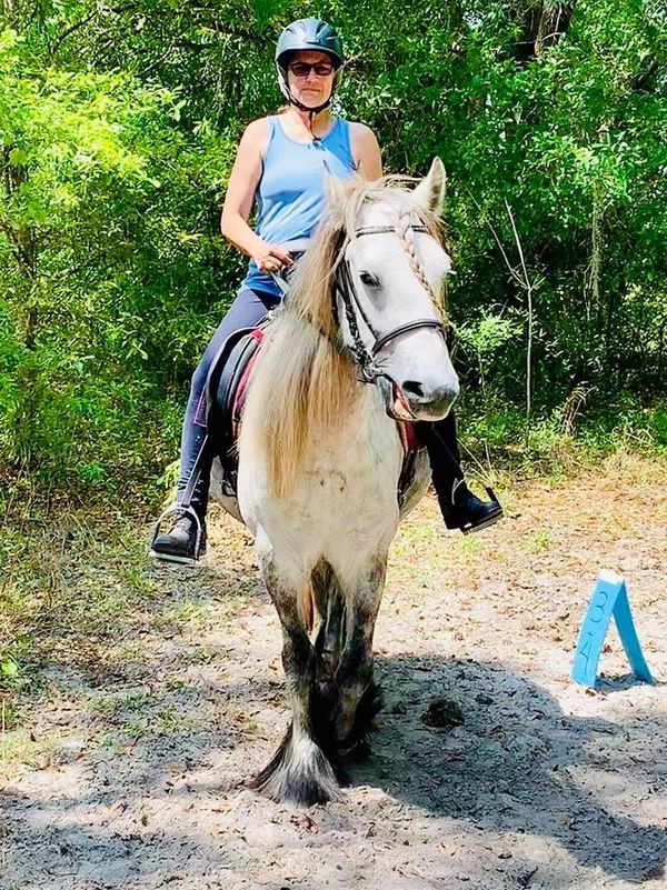 The Dales Pony is known for being a Great All Rounder, and I have done multiple disciplines with my ponies to demonstrate that versatility. We've done Hunter Pace, Dressage, Trick Training, Mounted Trooper Training, parades, Live Oak International breed showcase, many Ocala horse events, obstacle training and competitions, working equitation, trail riding at many of the amazing trails throughout Ocala. We've partnered with the CEP to bring knowledge about the Dales to the public eye, and were honored to participate in radio, online and TV interviews and even a live Podcast with the Horse Talk Show fromMalham England where I visited and showed off our two mares in their native land.